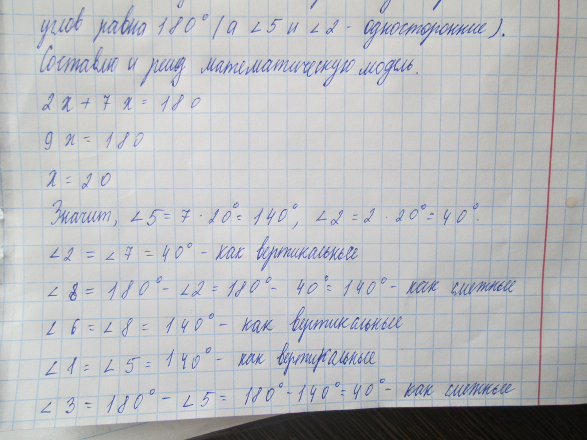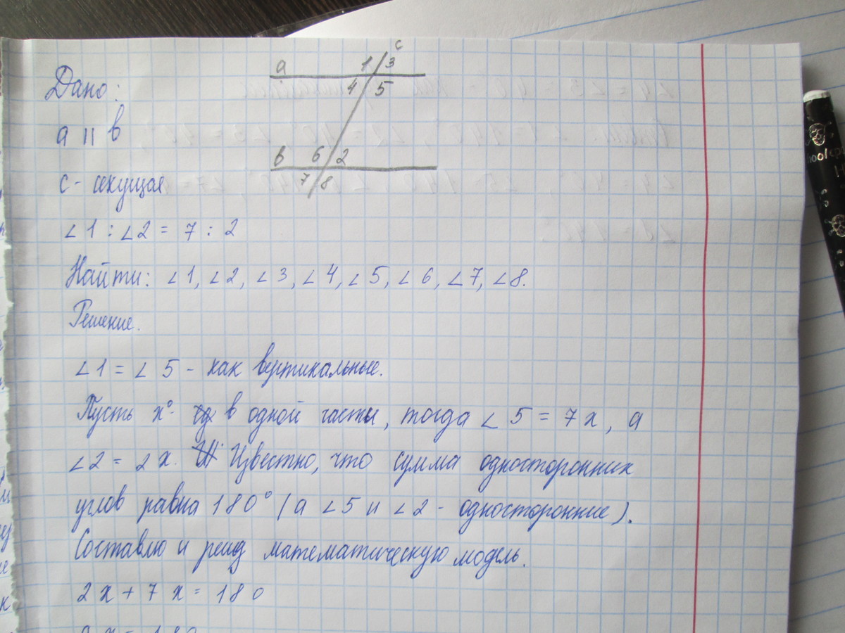 Дано: а параленьна б, с- секущая, угол 1= углу 2=7/2