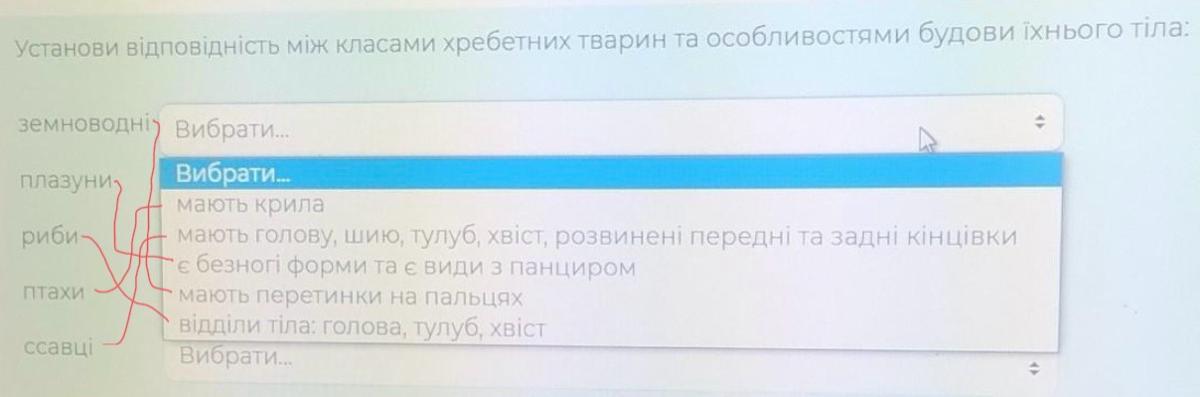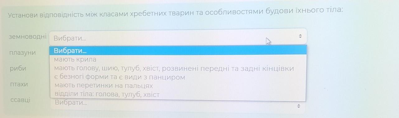 установи відповідність між класами хребетних тварин та особливостями будови ïхнього тіла: