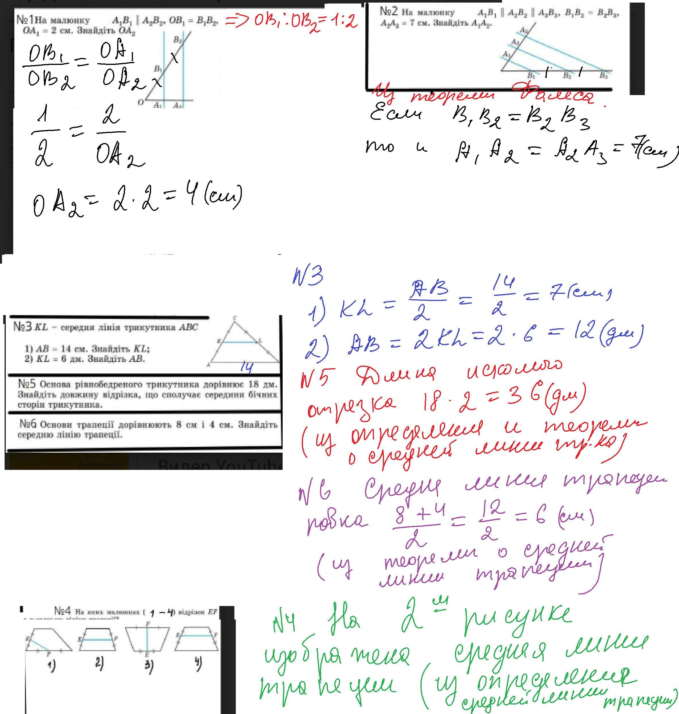 Объяснение: №1 если проходили только теорему Фалеса (без теоремы о пропорциональных отрезках) лучше немного подстроить под нее.