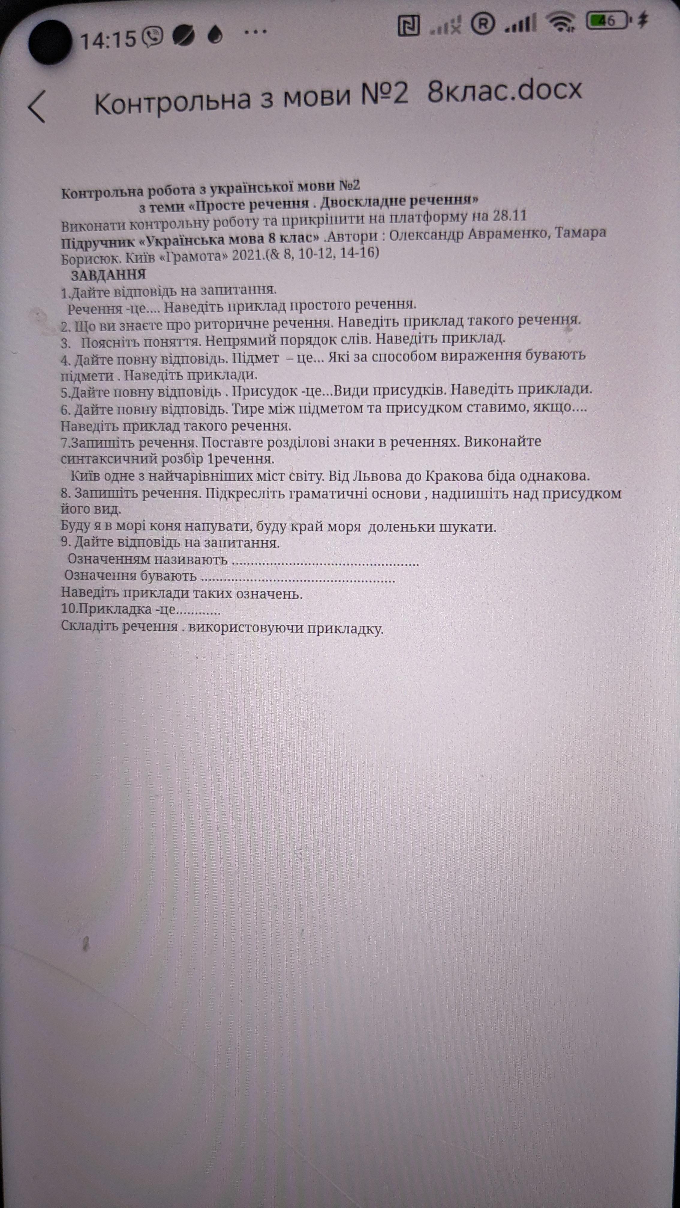 9) Означенням називають другорядний член речення, який називає ознаку предмета і відповідає на запитання який? чий? котрий?