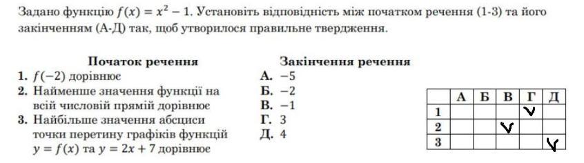 Ответ: 1 - Г , 2 - В , 3 - Д .
