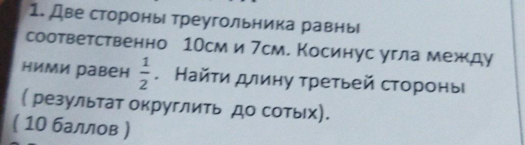 Стороны известны, косинус угла между ними тоже. Подставим в теорему: