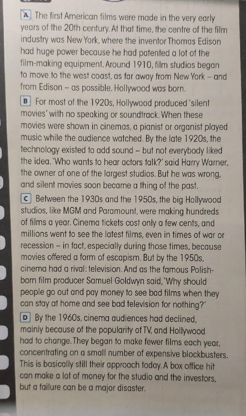 4) Cinema audiences were smaller from the 1960s onwards because of the rise of television and the increasing availability of films on home video. People could now watch films in the comfort of their own homes, which made going to the cinema less appealing.
