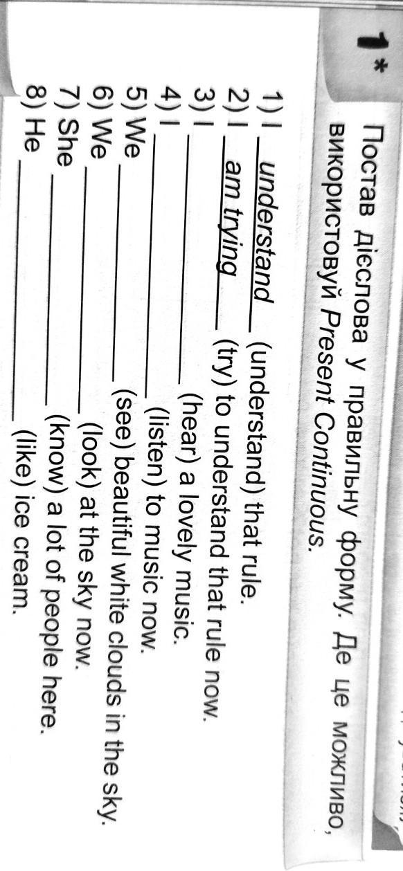 3 hear, 4 am listening, 5 see, 6 are looking, 7 knows 8 likes ..