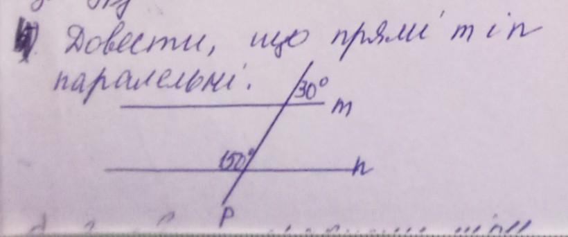За ознакою паралельності двох прямих, якщо при перетині цих двох прямих третьою (січною) внутрішні різносторонні кути рівні, то ці дві прям паралельні. Кут з прямою м дорівнює 30 градусів, кут з поямою н дорівнює 180-150=30 градусів.