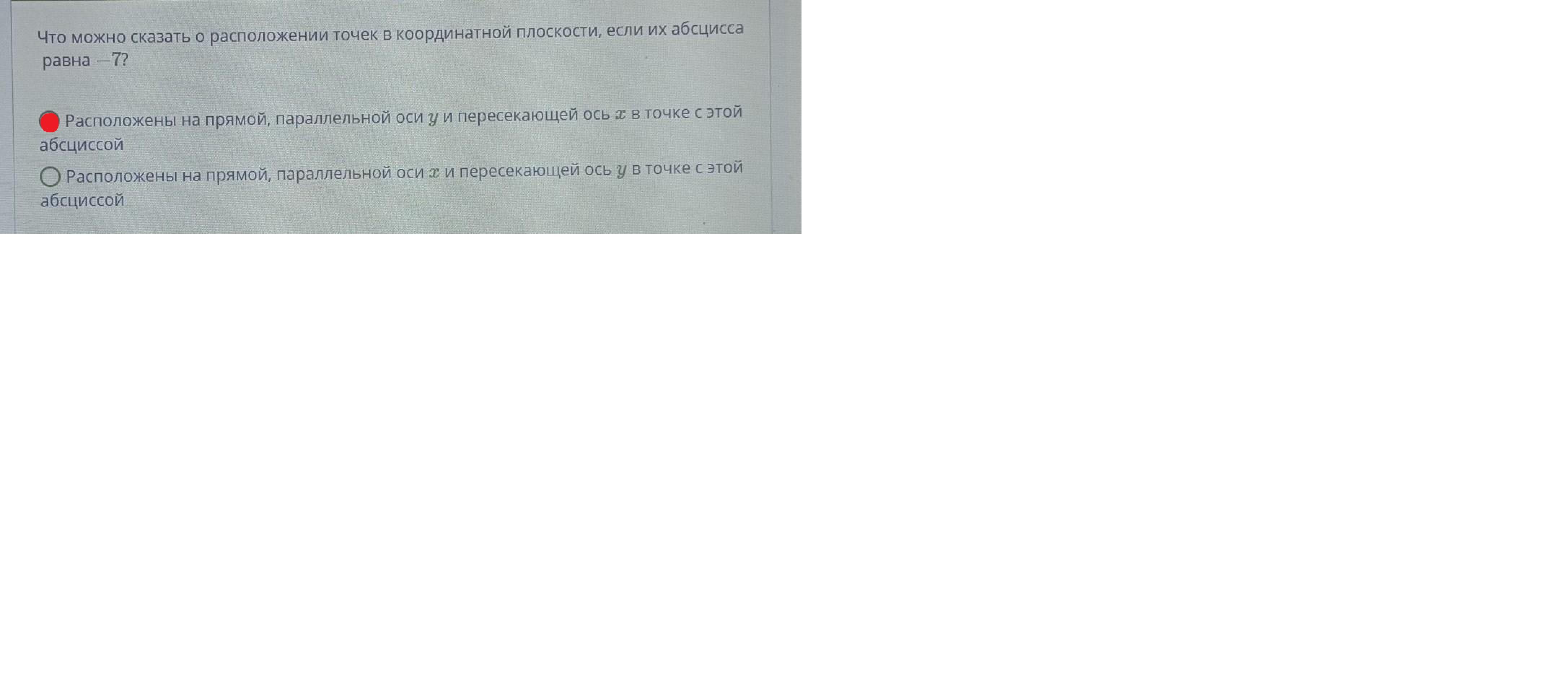 Точки в плоскости , если абсцисса равна семи,расположены на этой прямой и согласно положительной абсциссе (7) точка x пересекает точку y в этой абсциссе.