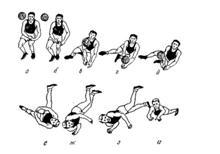 а)Падiння пiсля швидких перемiщень з перекидом через плече.