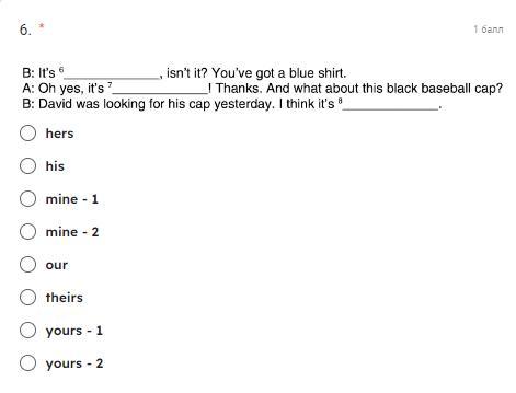 Відповідь:6 it's yours 7mine 8his
