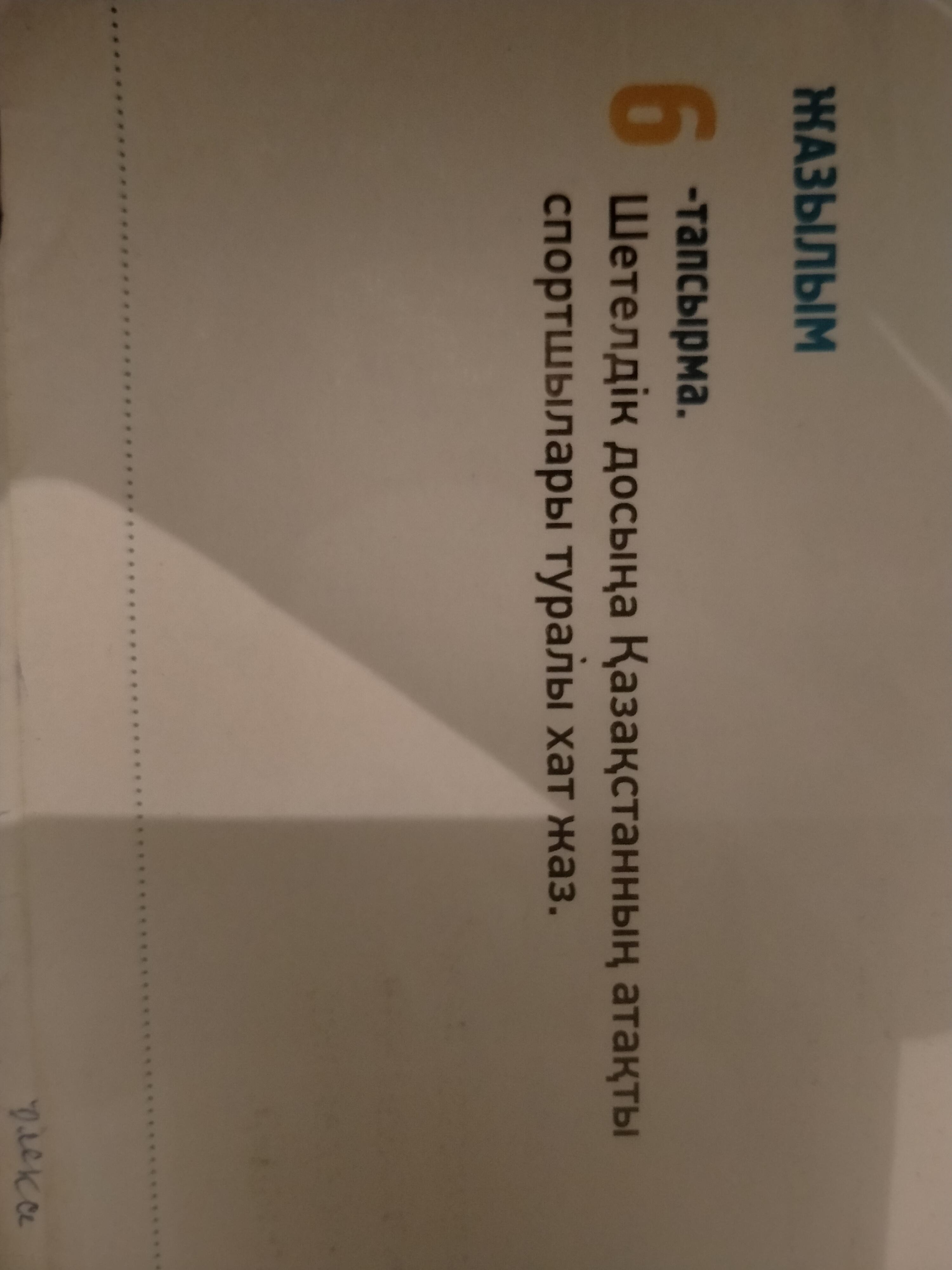 Сəлем Аманда. Бұл мен сенің Қазақстандық досың (твоя имя). Қалың қалай? Бүгін мен жаңалықтардан менің сүйікті спортшым Сəрік Сəпиевтің бокстан Корея еліне барып, алтын медаль алғанын біліп қуанып отырмын. Бұндай керемет қуанышты сендей жақын досыма айтпай отыра алмадым. Ал сен білесің бе біздің елімізде танымал спортшылар өте көп. Мен үнемі оларды қолдап, қолпаштап отырамын. Мысалы: Геннадий Головкин, Илья Ильин, Майя Манеза жəне т.б. спортшылары. Мен сенің спорт десе жанын беретін адам екеніңді білемін ғой. Сол үшінде саған өзім жақсы көретін спортшылар жайында жазып отырмын. Біздің Қазақстанымыздың спортшылары өте мықты, үнемі жүлделі орын алып келеді. Сонымен қатар осыдан 2-3 күн бұрын Геннадий Головкин Канада еліне барып, тағы мəрте алтын жүлдемен оралды. Оны өзіңде жақсы көріп, қолдап отырасың ғой. Сен Америкада тұрғандықтан жаңалықтан үнемі құр қаласың. Бүгіннен бастап саған осындай жаңалықтарды жеткізетін боламын. Айтпақшы мен келесі аптада сенің елің Америкаға қонаққа келемін. Жақсы онда, келесі кездескенше сау бол!
