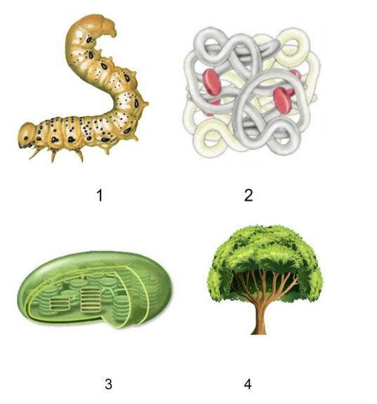 Какие из изображенных биологических объектов находятся на одном уровне организации живой природы?