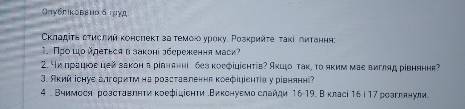2.Чи працює цей закон в рівнянні без кофіціентів?Якщо так,то яким має вигляд рівняння?
