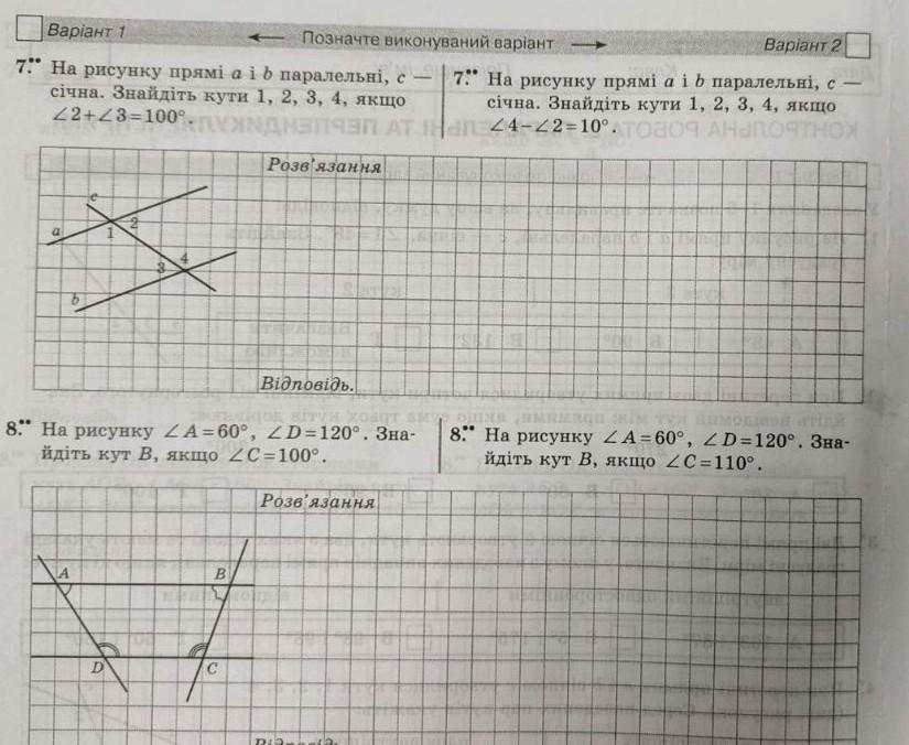 Пояснення:7. кут 4 = 180:2 + (10:2), кут 2 = 180:2 - (10:2). Кут 4 = куту 1 як внутрішні різносторонні, і кут 2 = куту 3, як внутрішні різносторонні.