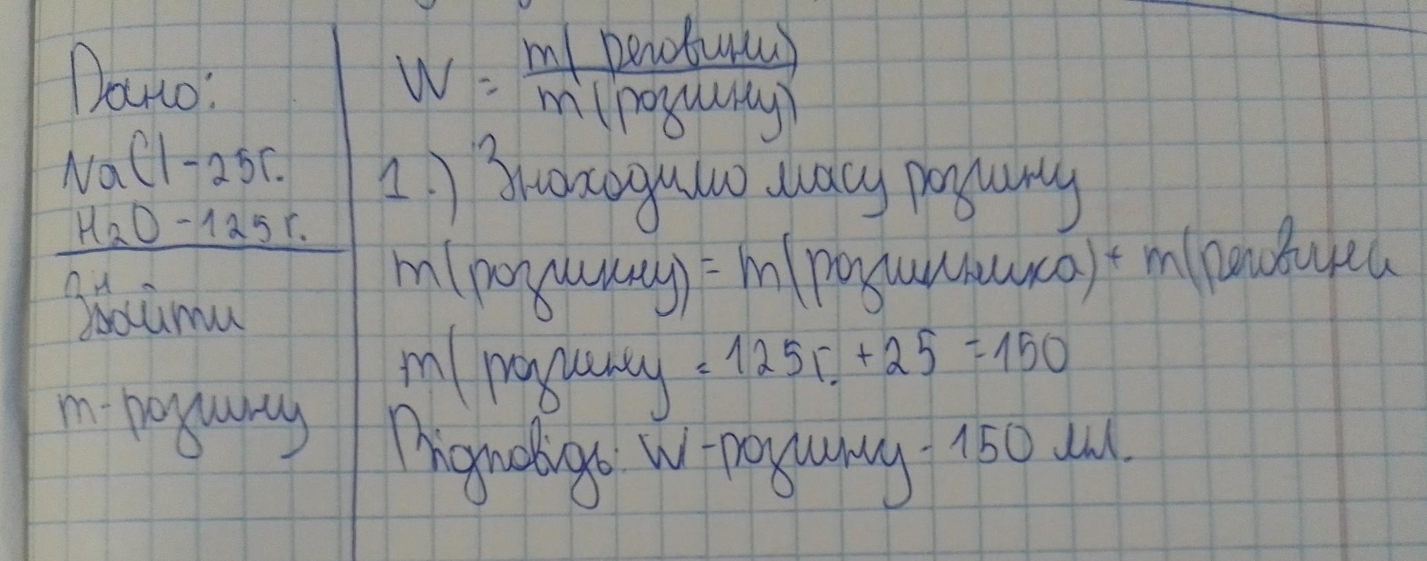 помогите пж Определить массовую долю раствора приготовленного из 25 грамм соли и 125грамм воды срочно надо! даю много баллов