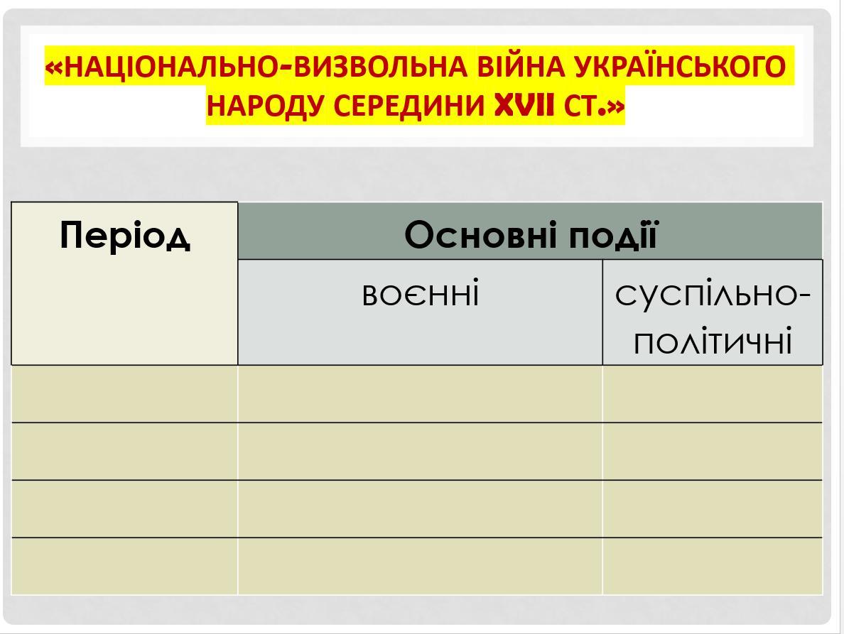 Створення Конституції в Чигирині (1649): Була прийнята перша в історії України конституція, яка закріплювала права та свободи козацького народу.