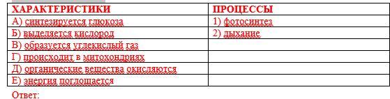 5.Установите соответствие между процессами жизнедеятельности растения и их характеристиками.