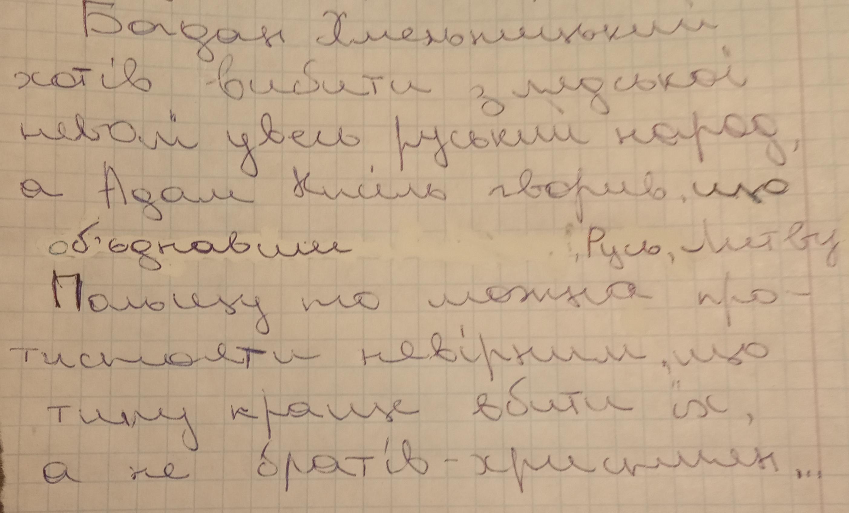 Ознайомтеся з уривками із промов Богдана Хмельницького та Адама Киселя під час зустрічі гетьмана з послами Речі Посполитої в Переяславі в лютому 1649 року. Проаналізуйте політичні позиції гетьмана і православного шляхтича.