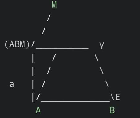 Чтобы показать это на чертеже, необходимо нарисовать плоскость (АВМ) и плоскость ү, указав точку М, линию пересечения плоскостей а и В, а также точку Е, как середину отрезка АВ. Ниже приведен чертеж, демонстрирующий общие точки плоскости (АВМ) и плоскости ү: