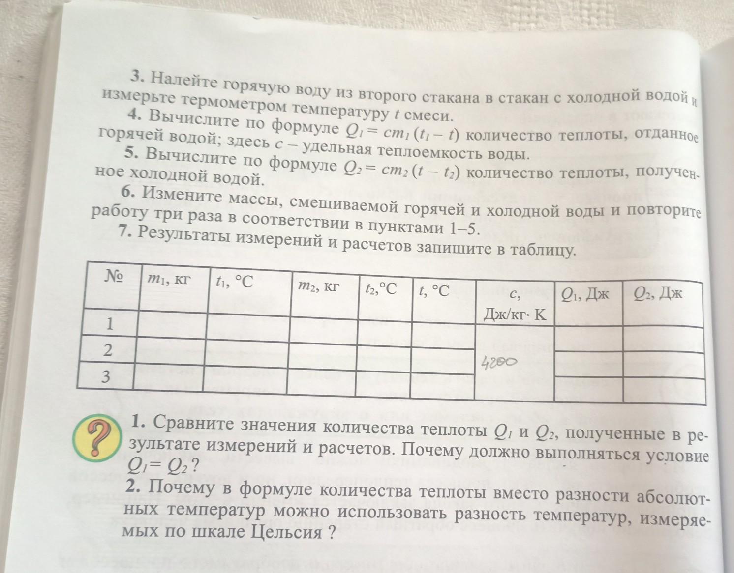 В ходе эксперимента подтвердилась справедливость уравнения теплового баланса при смешивании воды с различными температурами. Сумма переданных теплот в обе стороны оказалась равной, что подтверждает сохранение энергии в системе.