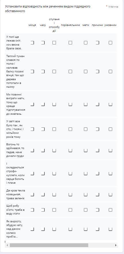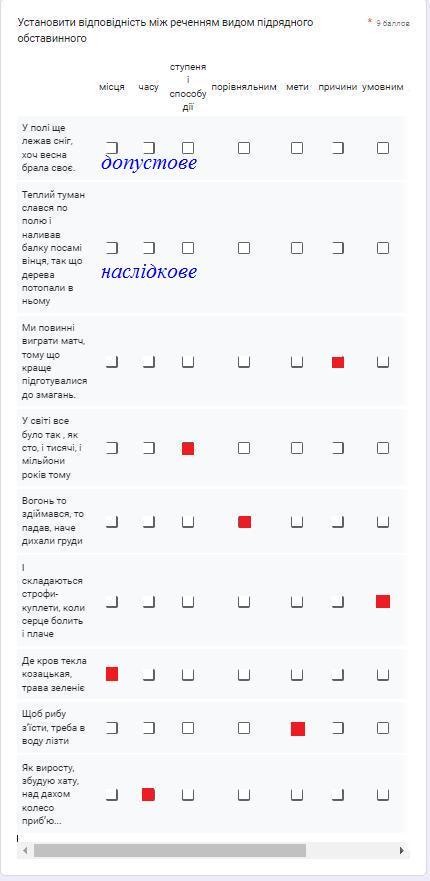 Установити відповідність між реченням видом підрядного обставинного (тест, помогите пожалуйста)