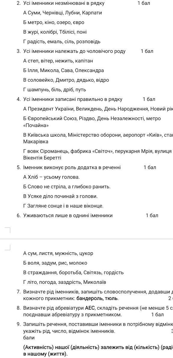 9 - Активність(ж.р., одн., н.в.) нашої діяльності(ж.р., одн, р.в.) залежить від кількості(ж.р., р.в., одн.) (раді..) не бачу повністю, в нашому житті(одн., с.р., м.в.).