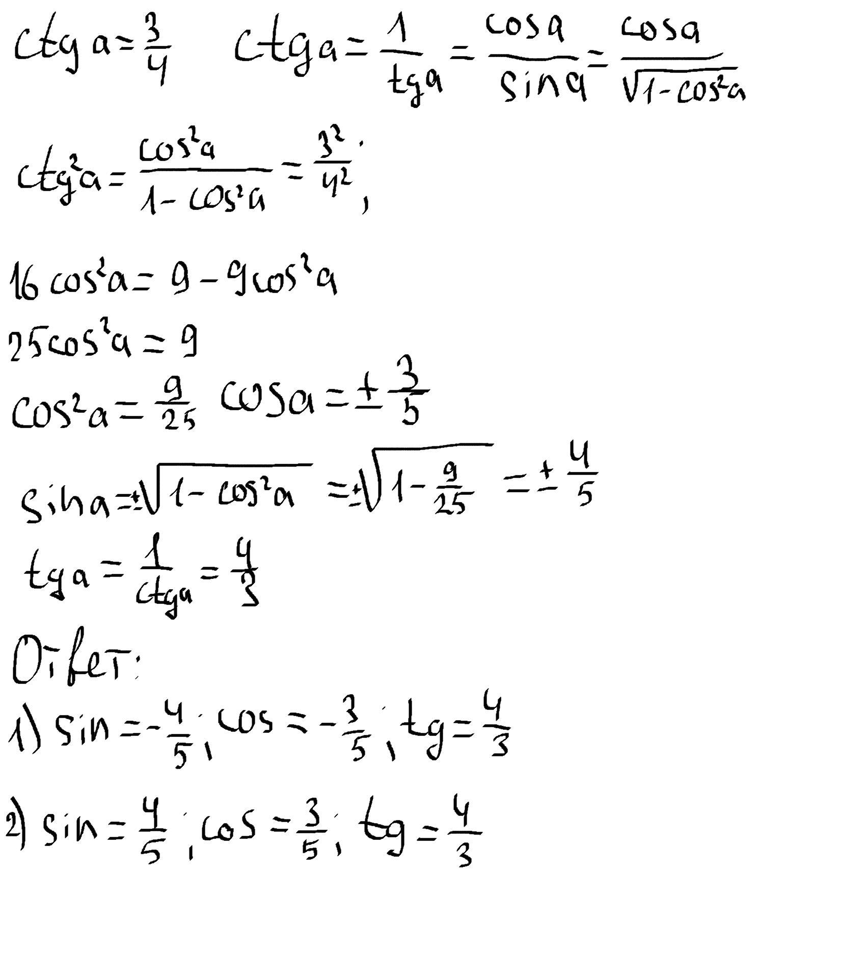 2) sin a = 4/5, cos a = 3/5, tg a = 4/3