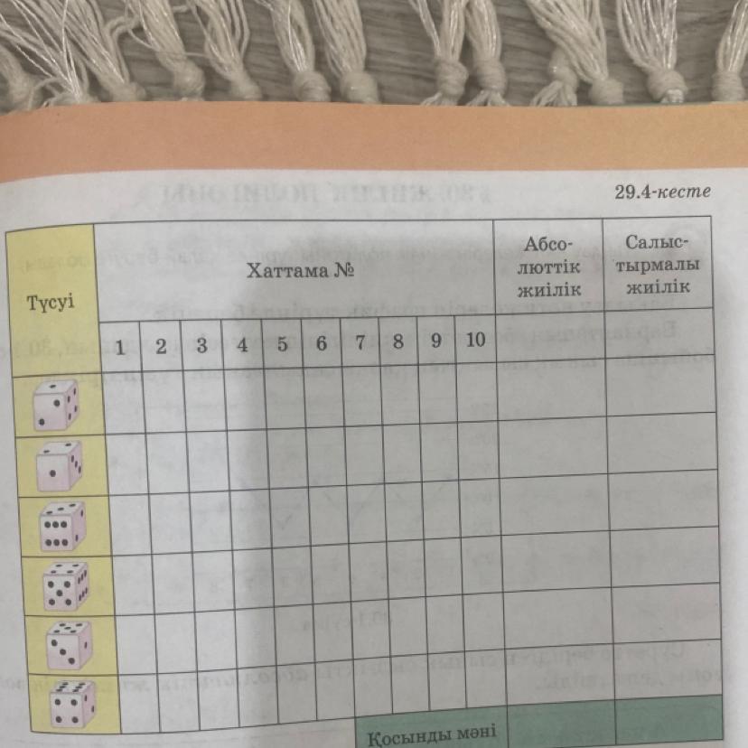 Ойын кубигін лақтыру бойынша тәжірибені 30 рет жасаңдар.