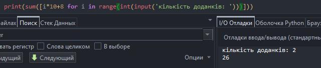Програма виводить на екран одне ціле число шукану суму.