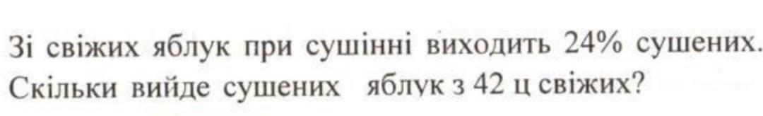 42 ц × 24% = 42 × 0,24 = 10, 08 ц