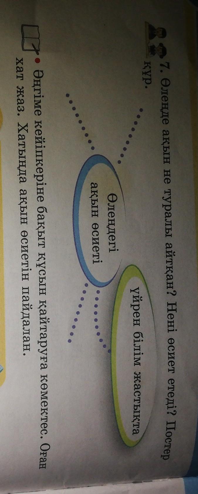 7. Өлеңде ақын не туралы айтқан? Нені өсиет етеді? Постер құр. үйрен білім жастықта Өлеңдегі ақын өсиеті • Әңгіме кейіпкеріне бақыт құсын қайтаруға көмектес. Оған хат жаз. Хатыңда ақын өсиетін пайдалан.