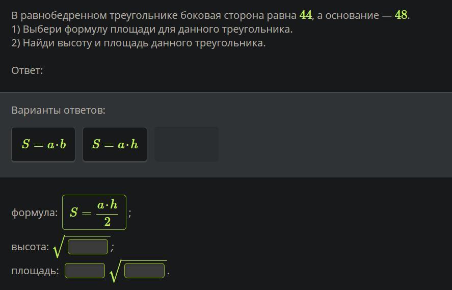 S=a*h/2=48*4√85/2=96√85 ед.кв.
