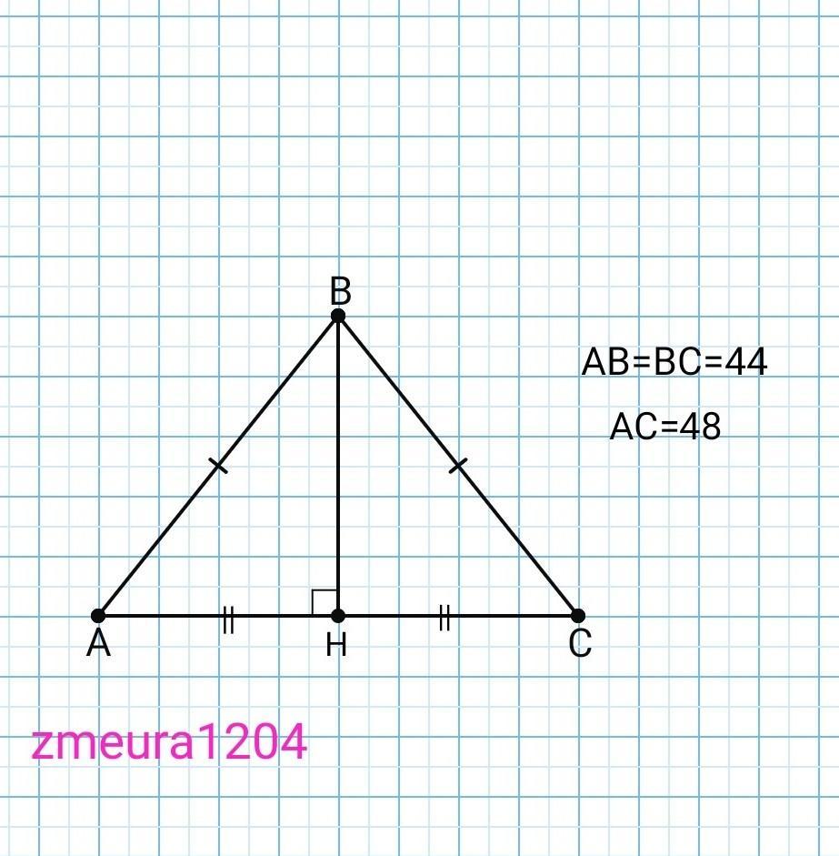 ВН=√(АВ²-АН²)=√(44²-24²)=
