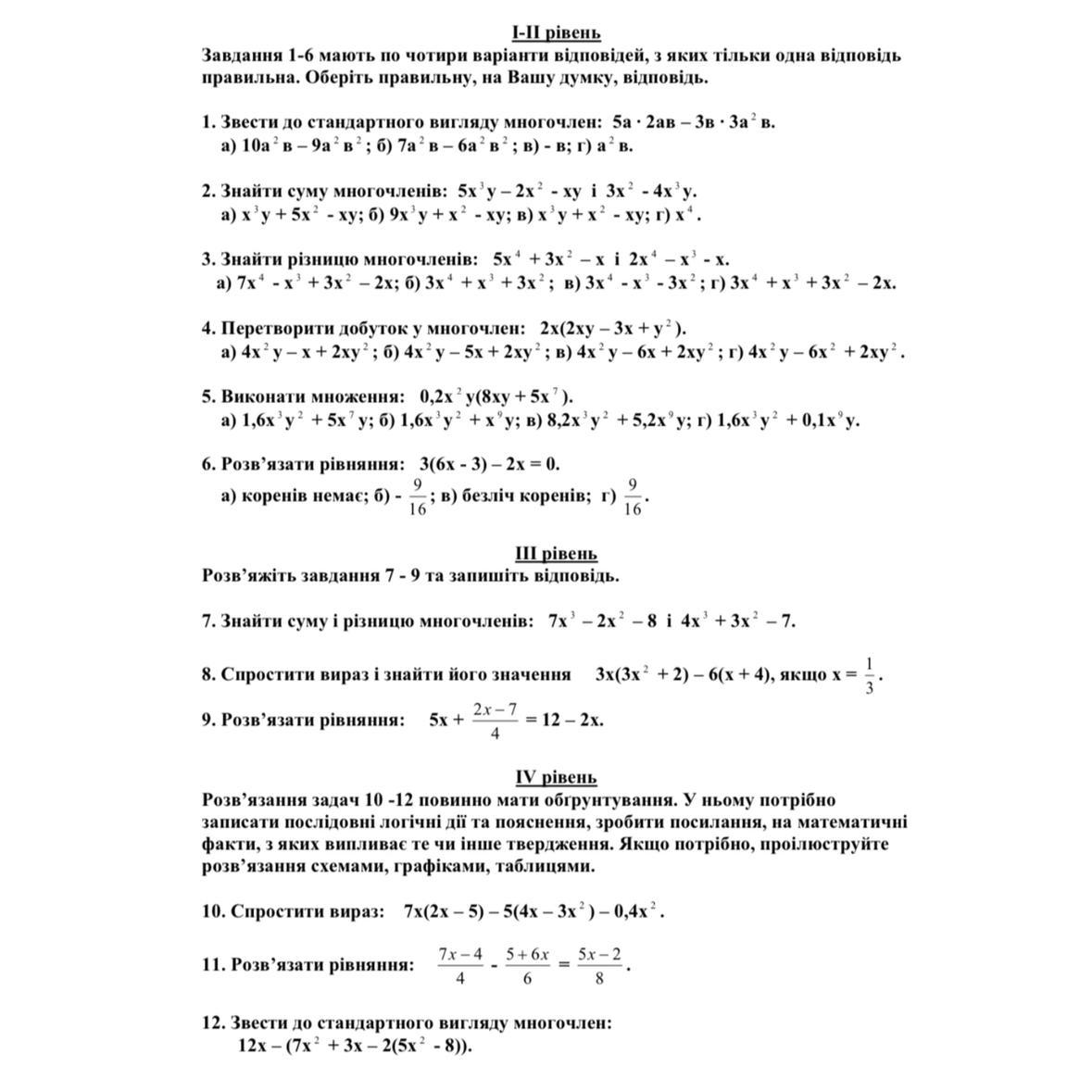 Завдання 1-6 мають по чотири варіанти відповідей, з яких тільки одна відповідь