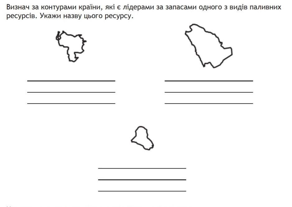 ДУЖЕ ШВИДКО!!! БУДЬ ЛАСКА!! Визнач за контурами країни, які є лідерами за запасами одного з видів паливних ресурсів. Укажи назву цього ресурсу.