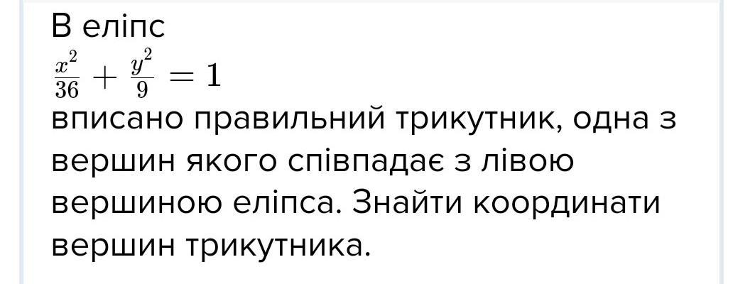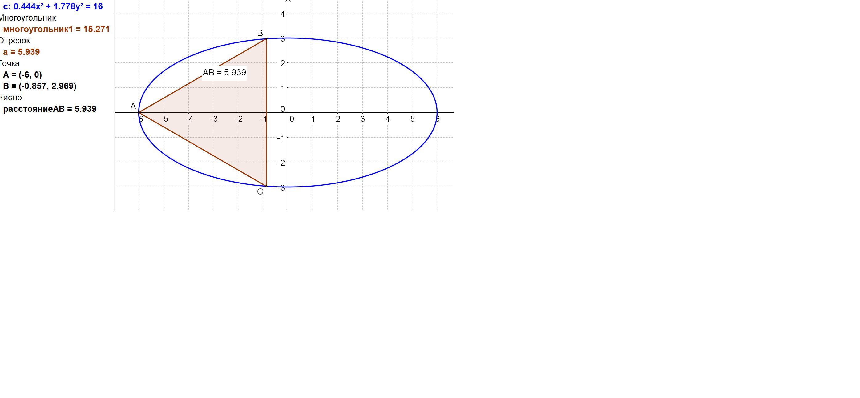 Из уравнения эллипса определяем координаты левой вершины: А(-6; 0).