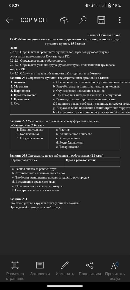 задание №2: Соответствие форм собственности видам