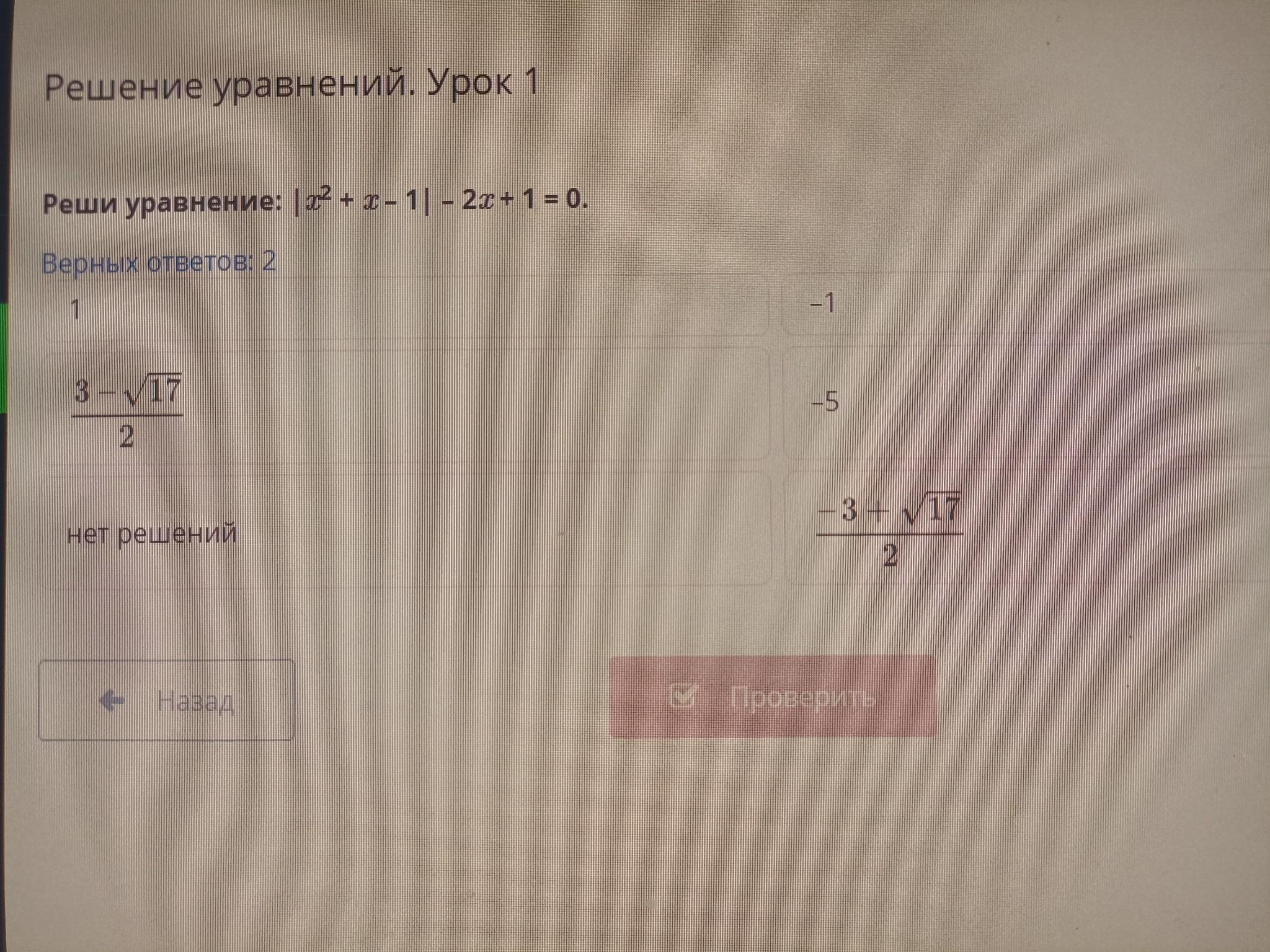 x^{2}+x-1-2x+1=0,x^{2}+x-1\ge0 -(x^{2}+x-1)-2x+1=0,x^{2}+x-1<0