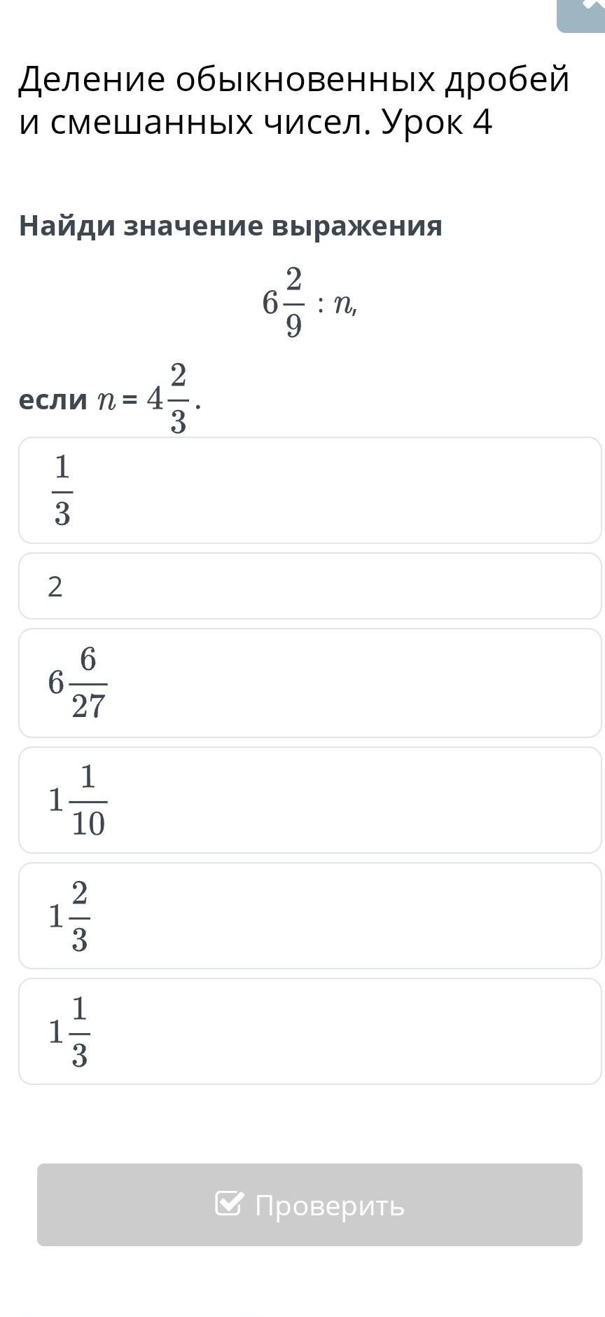 Найди значение выражения если n = 4 1 col H 3 2 ова на 6 1 1 1 27 10 23 13 3 6 2 9 : n, Проверить