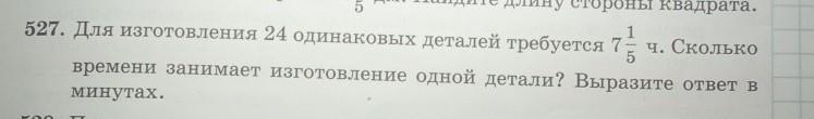 527. Для изготовления 24 одинаковых деталей требуется 7- ч. Сколько времени занимает изготовление одной детали? Выразите ответ в минутах.