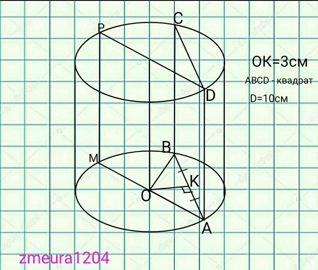 !!!Діаметр основи циліндра дорівнює 10см. На відстані 3 см від осі циліндра побудований переріз, що є паралельним осі циліндра та має форму квадрата. Знайдіть : 1) площу цього перерізу. 2)площу осьового перерізу.