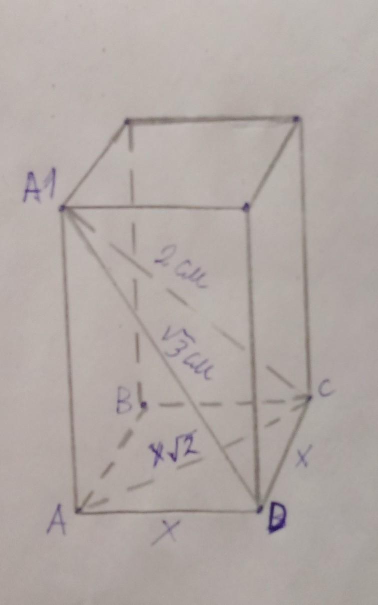 Знайдіть площу бічної поверхні правильної чотирикутної призми, якщо діагональ призми дорівнює 2 см, а діагональ її бічної грані √3 см.