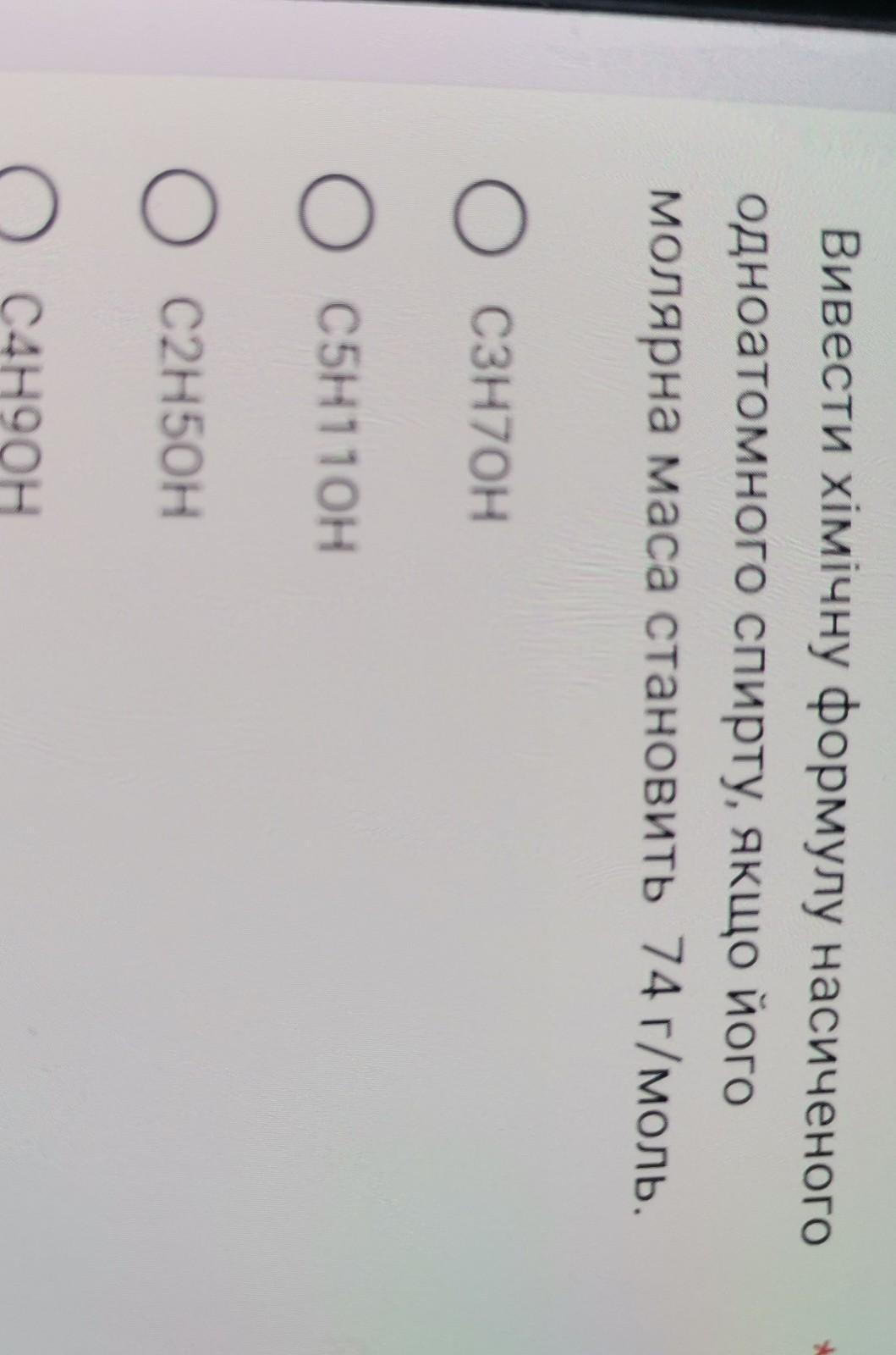Вивести хімічну формулу насиченого одноатомного спирту, якщо його молярна маса становить 74 г/моль.