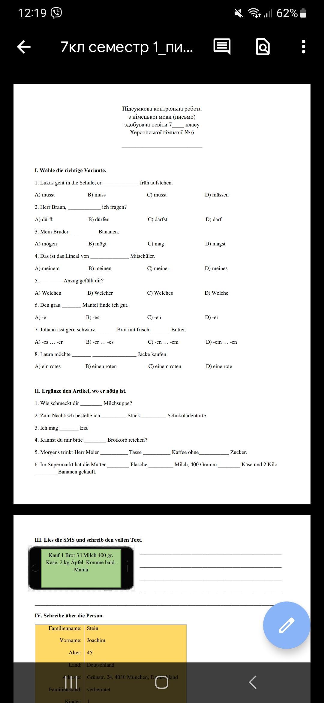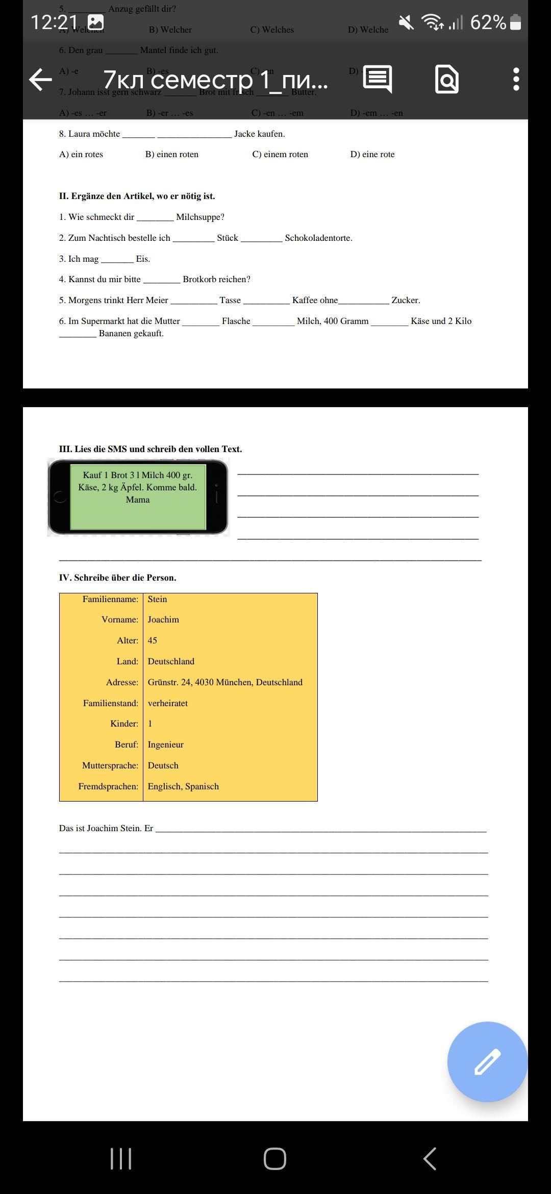 IV. Schreibe über die Person.
