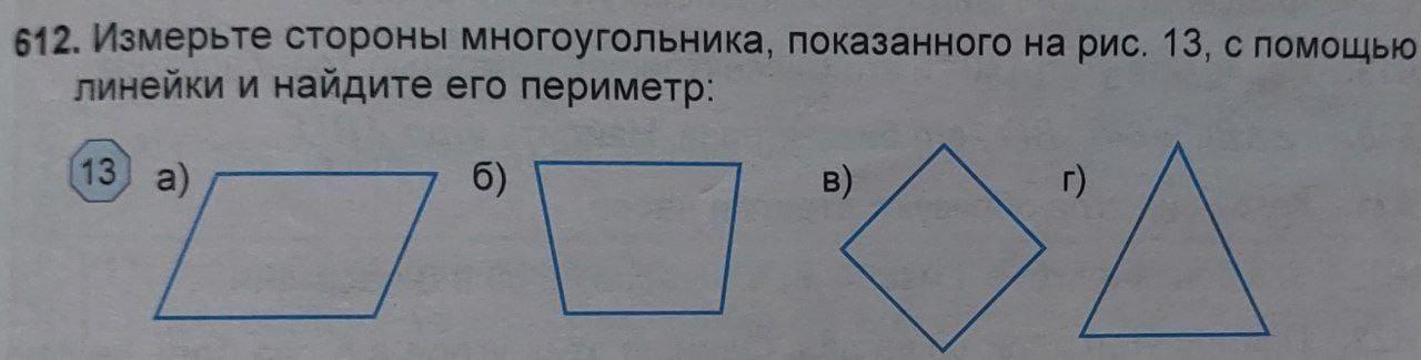 Линейкой каждую сторону каждой фигуры измерьте и потом все стороны сложите