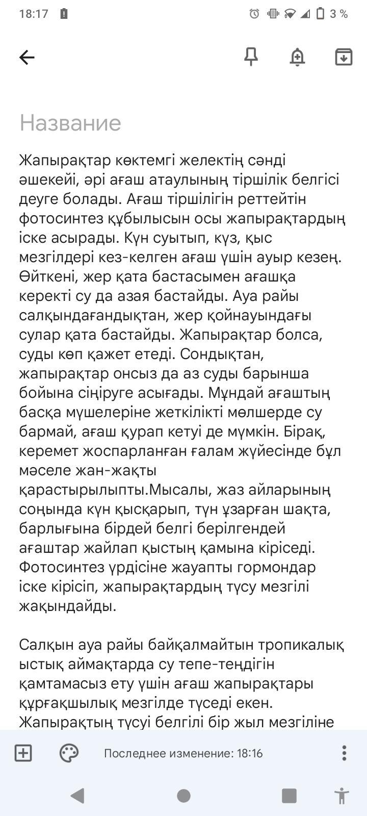 5-жаттыгу. Пайымдау мәтіні туралы білетінiндi пайда- ланып, жагдаяттан шығып көр. Медеттің інісі балабақшаға барады. Кеше кешке Айдын ағасынан «Жапырак кек- темде неге жасыл, күзде неге сары болады?» деп сурап коймады. Сұрақтың жауабын таба алмаған Айдын көмекке сыныптастарын шақырды. Сенің жауабың қандай болмақ? Сұрақтың жауабын таппасаң, дереккөздерге жүгін.