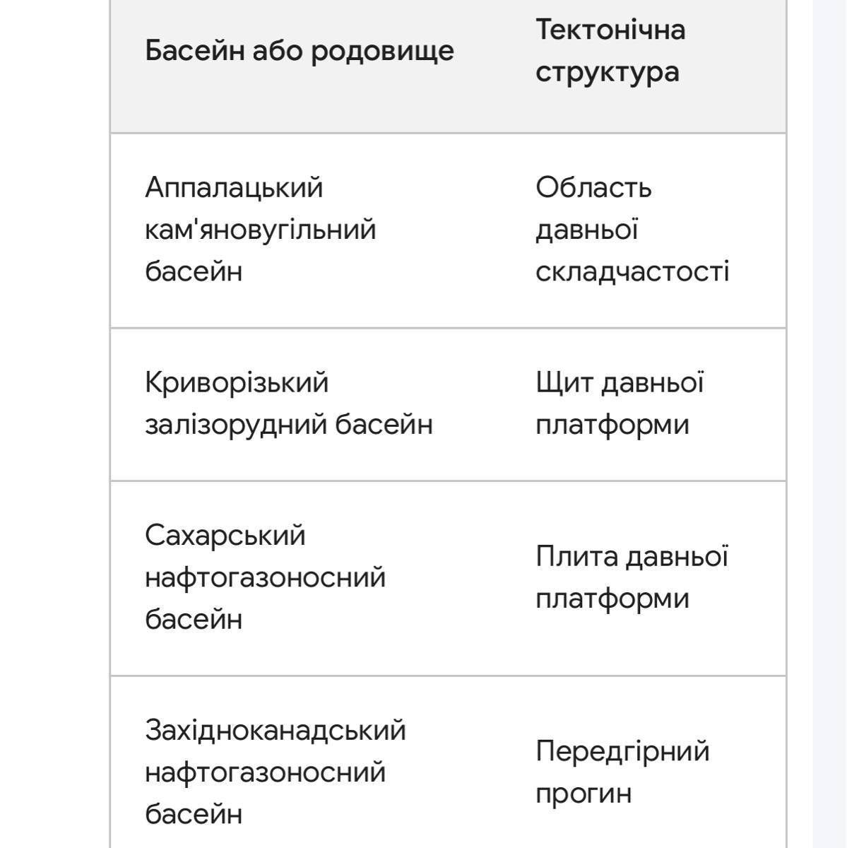 Установіть відповідність між басейнами й родовищами корисних копалин світового значення та тектонічними структурами.
