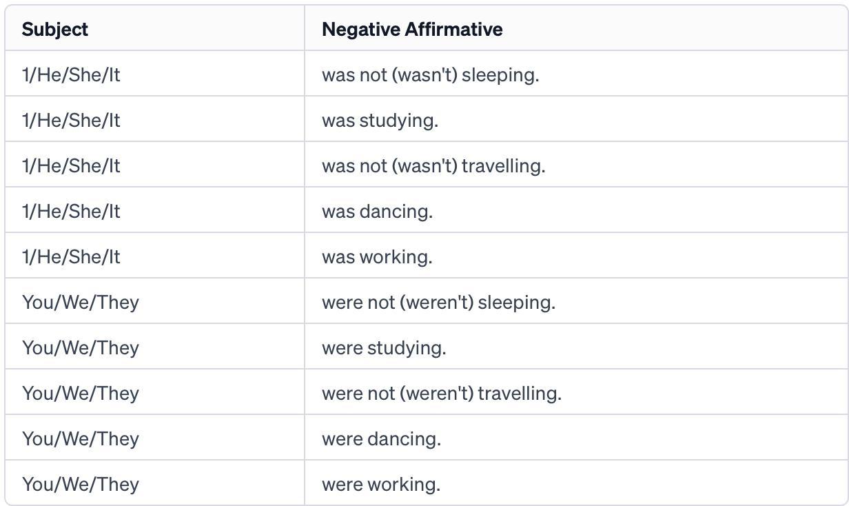 These sentences represent negative and affirmative forms in the past continuous tense