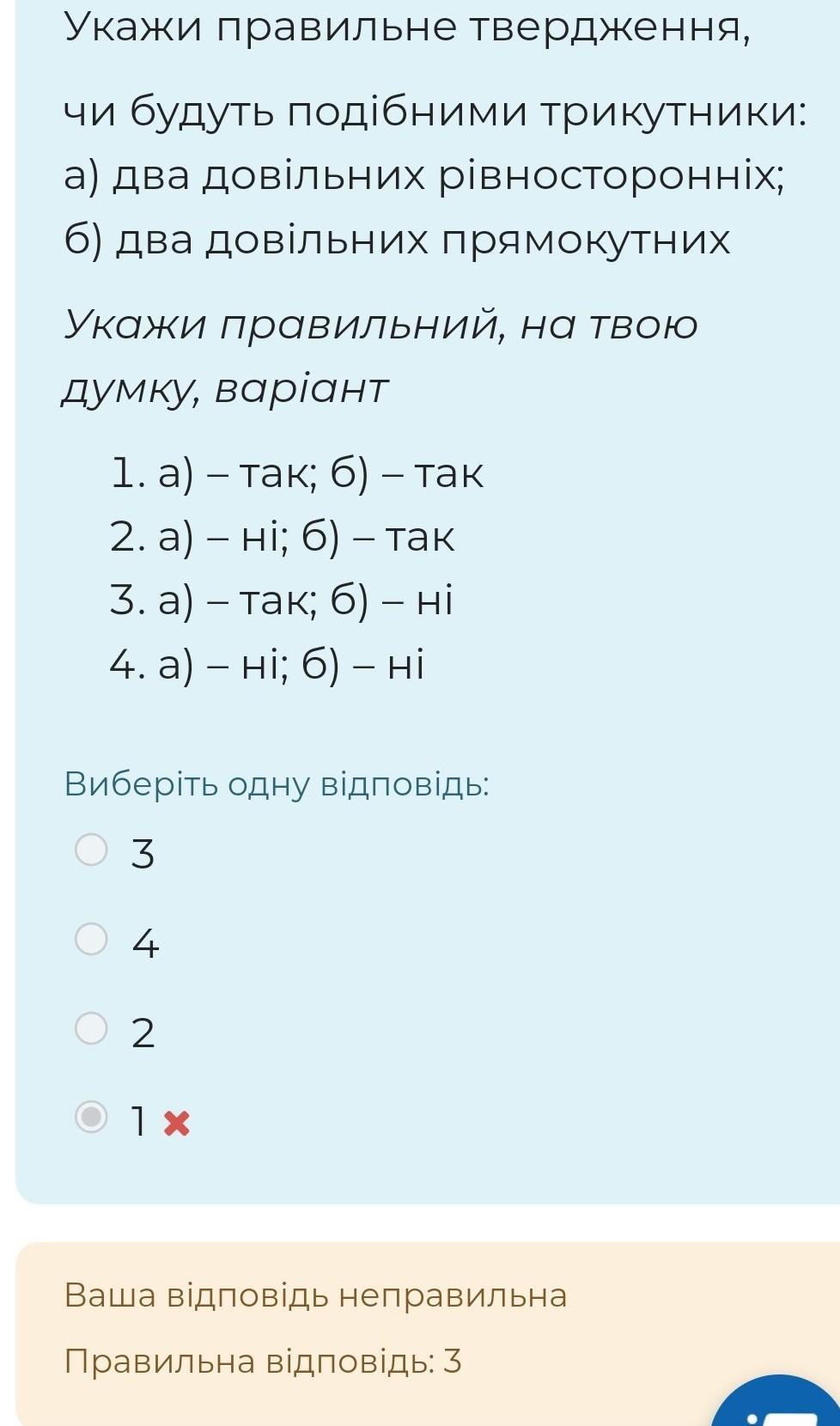 чи будуть подібними трикутники: а) два довільних рівносторонніх; б) два довільних прямокутних