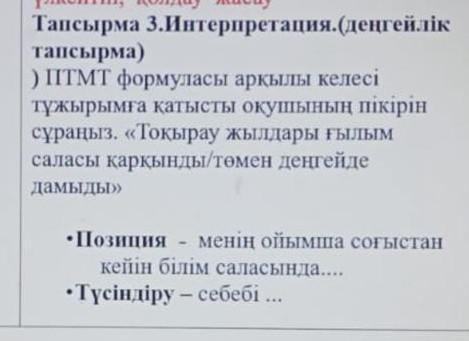 ) ПТМТ формуласы арқылы келесі тұжырымға қатысты оқушының пікірін сұраңыз. «Тоқырау жылдары ғылым саласы қарқынды/төмен деңгейде дамыды»