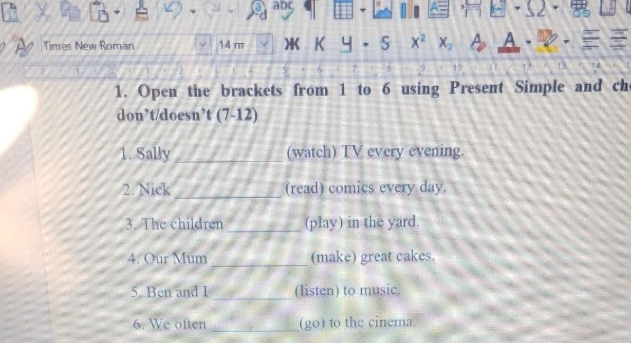 1) Sally watches TV every evening.