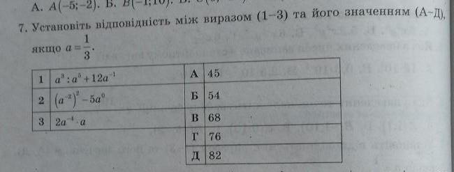 Установіть відповідність між виразом (1-3) та його значення (А-Д) якщо a=1/3 ДАЮ 50 БАЛЛОВ!!!